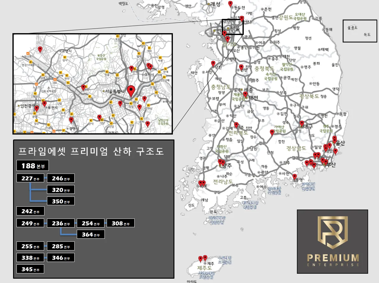 프리미엄사업부는 프라임에셋 188본부를 시작으로 파생된 16개본부 연합의 브랜드입니다.